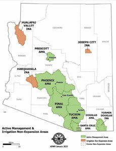 Four initial AMAs were created in the Groundwater Code: Phoenix, Pinal, Tucson, and Prescott. Later, the Santa Cruz AMA would be carved out of the Tucson AMA, and the Douglas AMA was voted into existence in November 2022. Each AMA has its own management goal and adopts conservation measures in a series of management plans to help achieve the management goal. In the Phoenix AMA, the management goal is to achieve “safe-yield” by 2025. Safe-yield is defined in the Groundwater Code as “a groundwater management goal which attempts to achieve and thereafter maintain a long-term balance between the annual amount of groundwater withdrawn in an active management area and the annual amount of natural and artificial recharge in the active management area.” A.R.S. § 45-561(12).