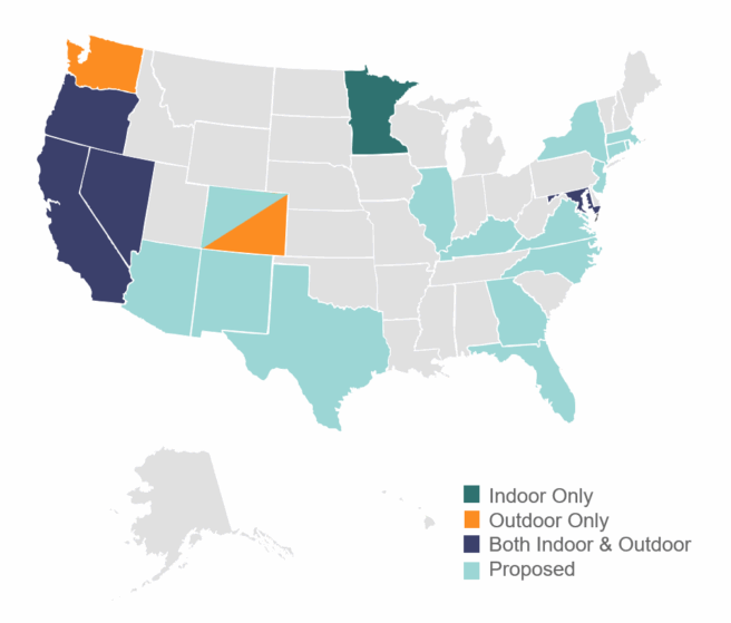 - Minnesota – effective 2014, regulating indoor worksites.