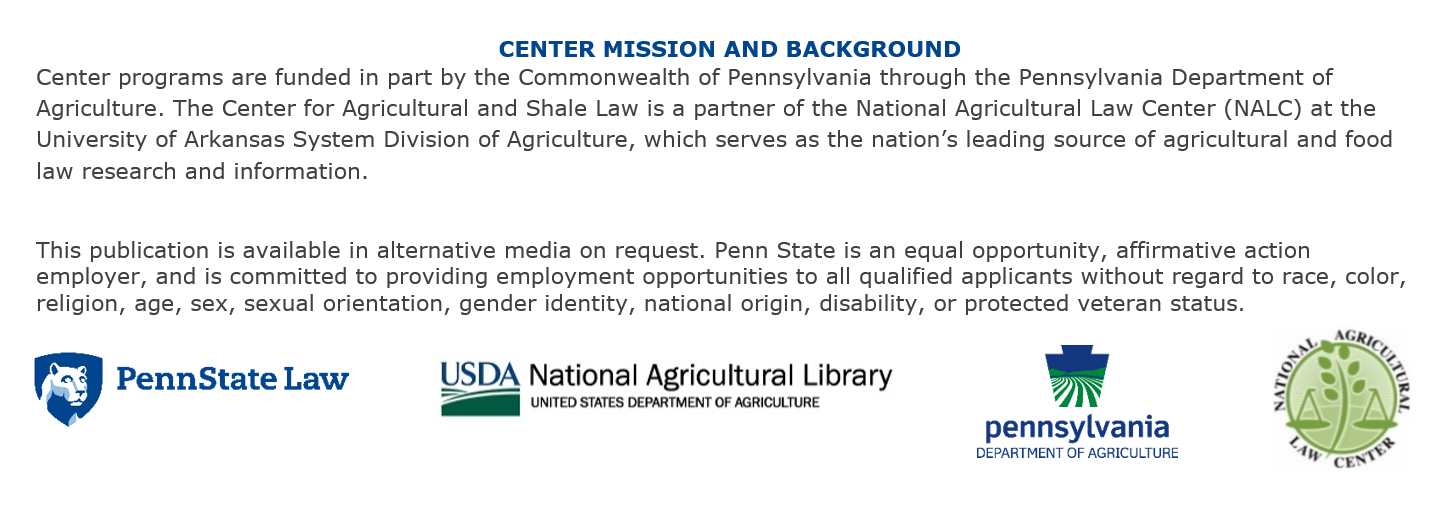 aglaw.psu.edu | Facebook | Twitter@AgShaleLaw | YouTube | LinkedIn